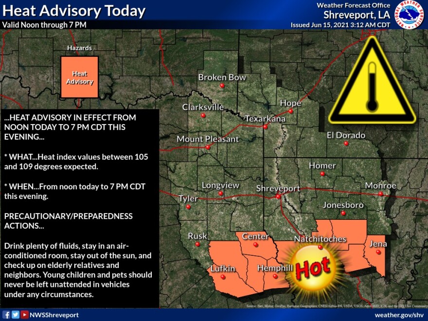 HEAT ADVISORY - Hot weather is making the news this morning – the forecast is for sunny and hot conditions today -- Senior Meteorologist Michael Berry with the National Weather Service in Shreveport reports some areas will feel warmer than others.